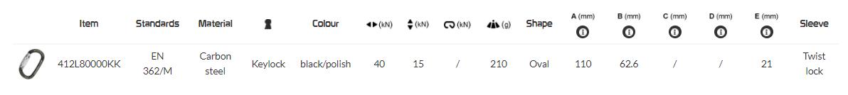 碳鋼O形安全連接鎖寬開口. 高負(fù)荷40kN. 非常適合重型應(yīng)用以及與結(jié)構(gòu)錨,救生索等的連接.