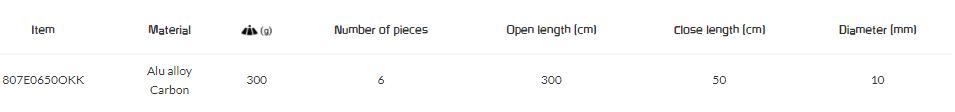 由6件長(zhǎng)50厘米桿組成,每個(gè)直徑10毫米,總長(zhǎng)300厘米