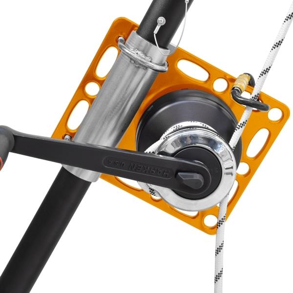 The top is composed of two DISCORIG plates with “Textile Friendly” connection points. Ropes and slings can be attached directly to the plate, providing a wide range of possible configurations with pulleys, connectors and mechanical rope clamps.