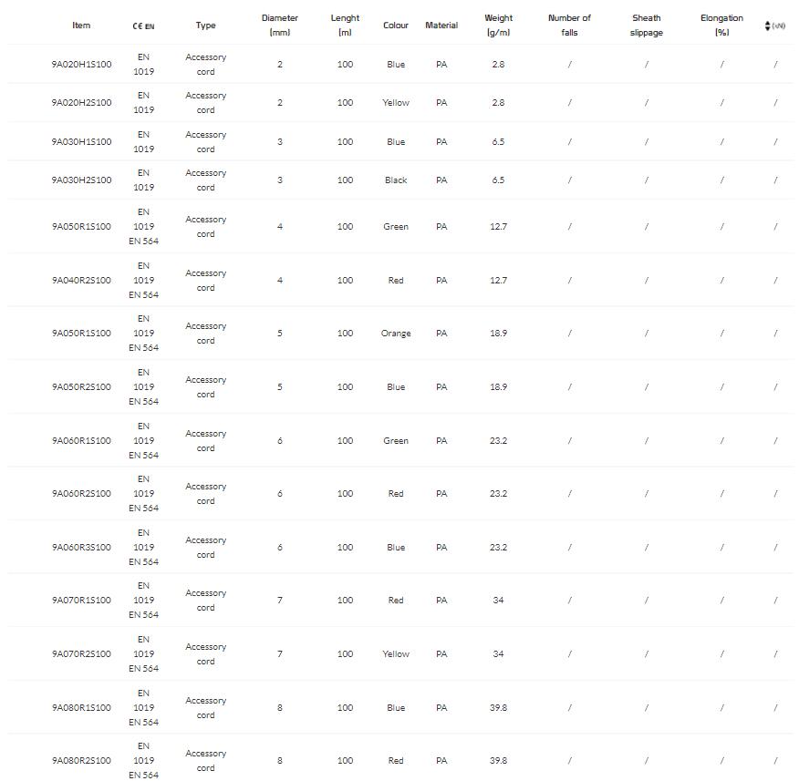 配件線,有多種直徑可供選擇(從 2 毫米到 8 毫米)。