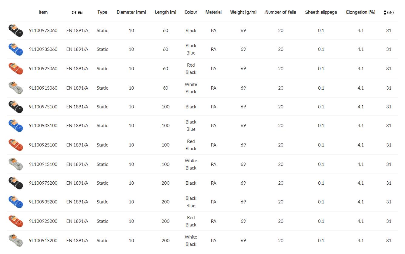 Semi-static rope with diameter 10 mm, certified CE EN 1891. Available in different lenghts: 60, 100, 200m.