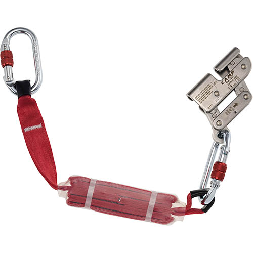 鋼絲用止墜器套裝(1317*1+1029.01*1+981*2),可沿鋼絲單向滑動,反向受力卡緊鋼絲,一旦墜落能迅速鎖死鋼絲,適合鋼絲直徑8mm,(此產(chǎn)品僅可與符合CE EN355認證標準的勢能吸收器組合使用),重量:990g。認證標準:CE EN353/2+EAC
