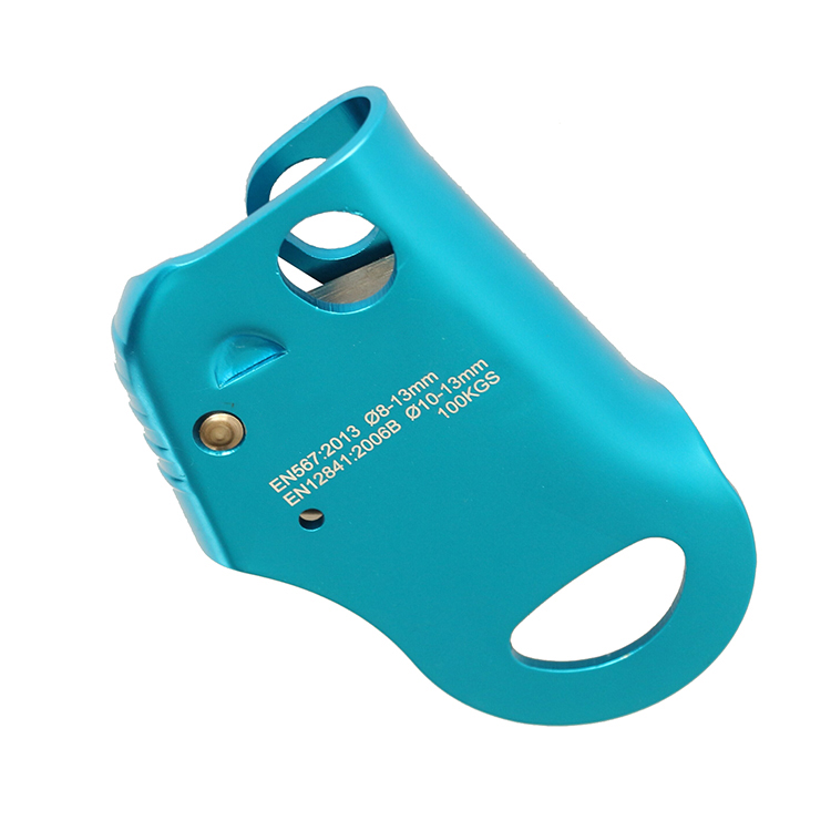 荊爪設(shè)計(jì)有自動(dòng)排泥溝槽,在結(jié)冰或有泥沙的繩索上依然有足夠好的抓力;上升器的操作系統(tǒng)都設(shè)計(jì)在框架內(nèi),可以大程度的預(yù)防攀升時(shí)的意外鉤掛,方便單手安裝或解除;稍外傾的上方縛孔使用腹前上升器固定肩帶,使上升器服帖地固定在腹部前方;下方連接孔用于連接半圓形安全扣或三角形連接器和安全帶;適用于8至13毫米直徑單繩。