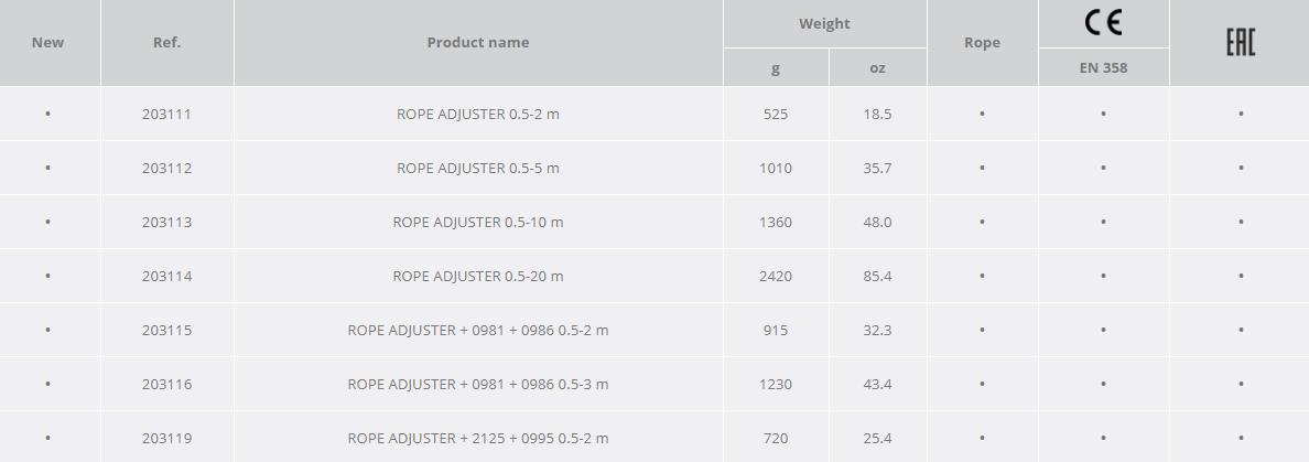 直徑12.5mm聚酰胺靜力繩定位挽索,人體工程學(xué)設(shè)計(jì)調(diào)節(jié)裝置,調(diào)整長(zhǎng)度:0.5m-2m,重量:720克。認(rèn)證標(biāo)準(zhǔn):CE EN 358+EAC