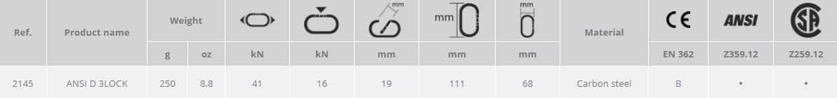 • 產(chǎn)品描述:意大利坎普CAMP ANSI D 3LOCK 2145 高空作業(yè)D型鋼鎖