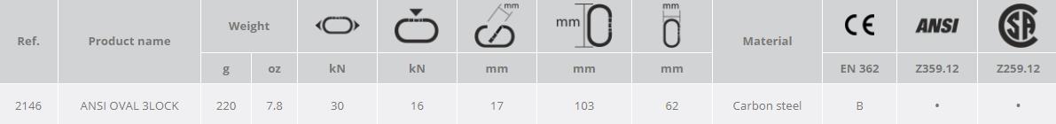 • 意大利坎普CAMP  ANSI OVAL 3LOCK	2146	高空作業(yè)O型鋼鎖