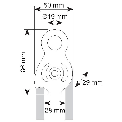 加強型固定側板式單滑輪,超大承重連接孔,一側可安裝抓結,自動潤滑軸套設計適用于低速工作環(huán)境,工作效率:80%,最大過繩直徑:13mm。鋁合金材質側板和轉輪,不銹鋼輪軸,拉力:24KN,工作負荷:2KN*2=4KN,尺寸:高86mm*寬50mm,承重掛點孔徑19mm,重量:95g。認證標準:CE EN12278+EAC