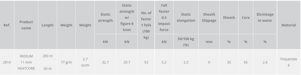 直徑11mm靜力A類繩,適用于高強度的工作環(huán)境。采用HEACORE工藝技術(shù),使繩皮和繩芯緊密結(jié)合在一起,此工藝提高了操作性能,減少了外皮的滑動度。最重要的是通過防止繩皮的斷裂提高了繩索的安全性。外皮由32股繩絲制成。