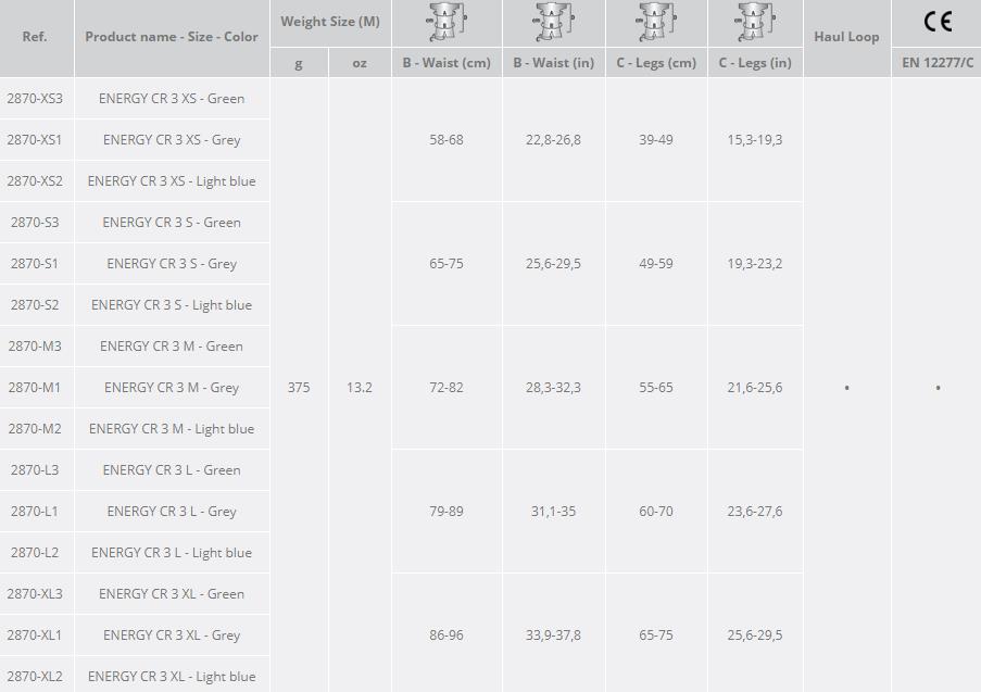 攀登款半身安全帶,腰帶單側(cè)調(diào)整設(shè)計,腰帶采用6mmEVA泡沫材料和腿帶采用4mmEVA泡沫材料填充,腰帶和腿帶備有鋼制自動調(diào)整卡扣,可調(diào)節(jié)松緊帶連接腿部和腰部,收緊帶15mm回旋縫紉,4個裝備環(huán),粉袋連接環(huán)。尺碼:XS-S-M-L-XL。重量:390g。認(rèn)證標(biāo)準(zhǔn):CE EN12277/C。
