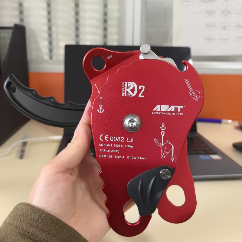 是一款集下降、上升、提升、拖拽功能于一體的繩索救援設(shè)備,前面板掛點(diǎn)采取可開(kāi) 放設(shè)計(jì),便于操作人員在不摘下設(shè)備的情況下,直接安裝、拆取繩索。有救援功能,RD2采用止退滾動(dòng)滑輪+鎖止塊設(shè)計(jì),可由救援人員協(xié)助其他人上升或下降,幫助人員迅速到達(dá)目標(biāo)位置,適合需要繩索技術(shù)作業(yè)的場(chǎng)合。需要高空下放操作時(shí),通過(guò)控制救援型下降器的手柄實(shí)現(xiàn)順暢下降。當(dāng)下降環(huán)境受限時(shí),松開(kāi)手柄可立即停止下 降,鎖止靈敏。拖拽操作時(shí),即使?fàn)恳送蝗皇Э鼗蜥尫?,重物?huì)迅速鎖止在系統(tǒng)中,不會(huì)自由下降。