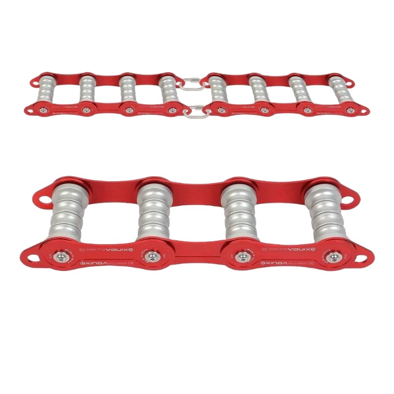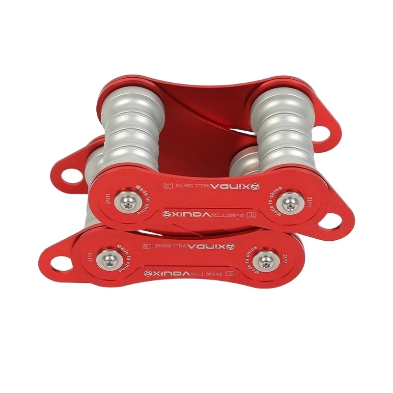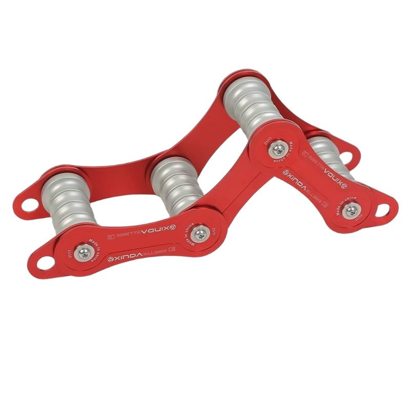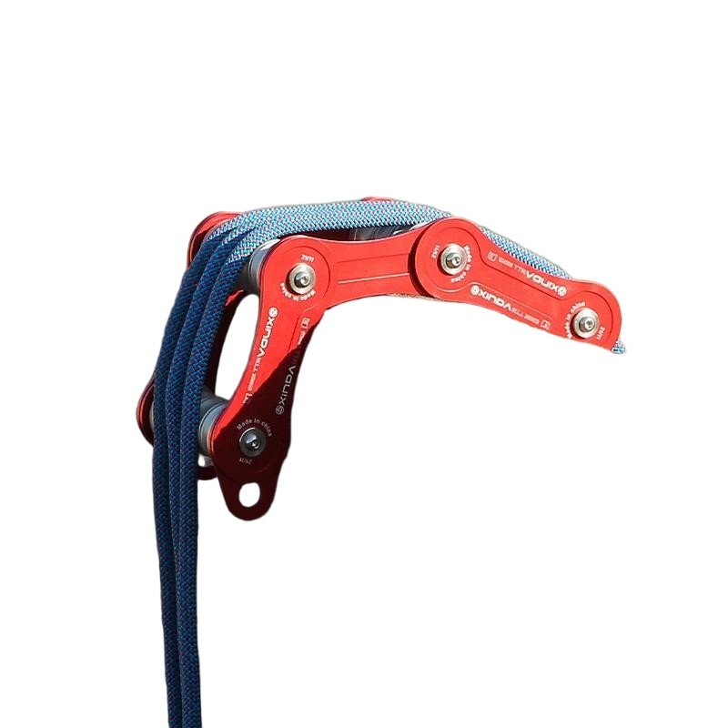 墻角護護繩器:由4個可滾動保護滾輪組成,使用時繩索通過時滾輪隨之轉(zhuǎn)動,其摩擦力以及摩擦面積比其余的保護繩索器材都小,能夠保護繩索外表皮。它具有3鉸接件結(jié)構(gòu),可適應(yīng)任何類型的邊緣,尼龍雙滾軸讓2根繩索更快速的移動。墻角護輪外側(cè)由4個鋁制金屬保護框架連接而成,使得繩索能夠在使用時穩(wěn)定在護輪保護區(qū)域,不會因為橫向作用力使得繩索與保護器材脫離。而且每組滾輪與金屬外側(cè)保護框架都是靈活連接,在使用時可根據(jù)棱角的形狀不同隨意變換保護角度,靈活多變的全面角度保護是墻角護輪的亮點。