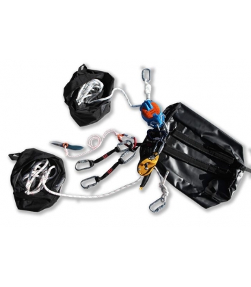 包括:1個考拉45l背包+2個頂點(Petzl)頭盔+1個帶20米(65,62英尺)繩索的Derope下降救援裝置+1個帶20米(65,62英尺)繩索的I'DS下降裝置+7個扭鎖式卡扣+1個K-經(jīng)典卡扣+1個石灰直卡扣+1把全剪+3個短吊索+1個80厘米(31,50英寸)的織帶環(huán)