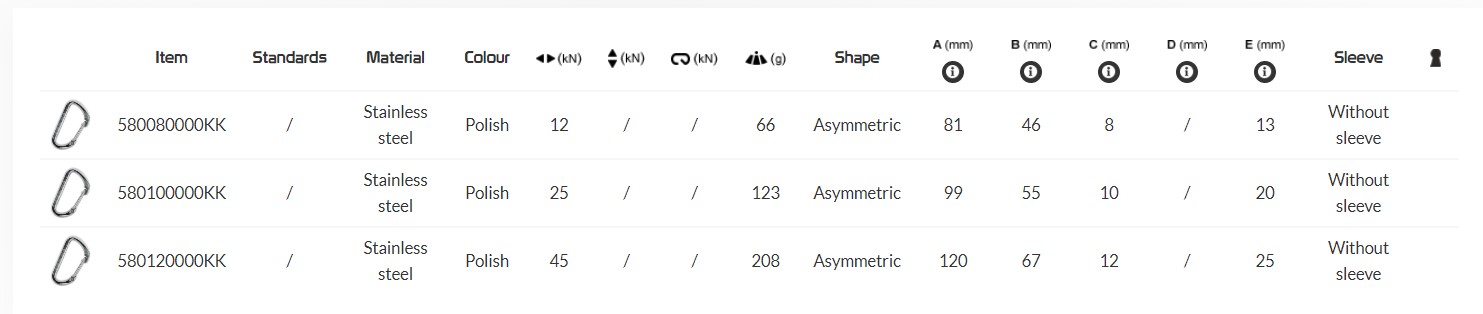 AISI 316不銹鋼登山扣,不對(duì)稱形狀和鋼絲鋼絲開(kāi)口