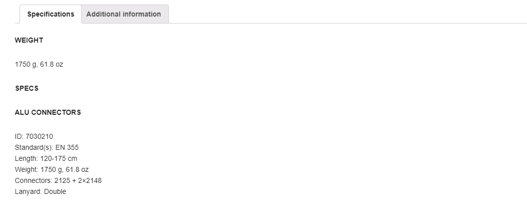 交替攀爬保護(hù)器挽索,采用32mm彈性聚酯纖維扁帶連接,長度:120-175cm,基本配置:2029*1+2125*1+2148*2,重量:1750g。認(rèn)證標(biāo)準(zhǔn):CE EN355+EAC