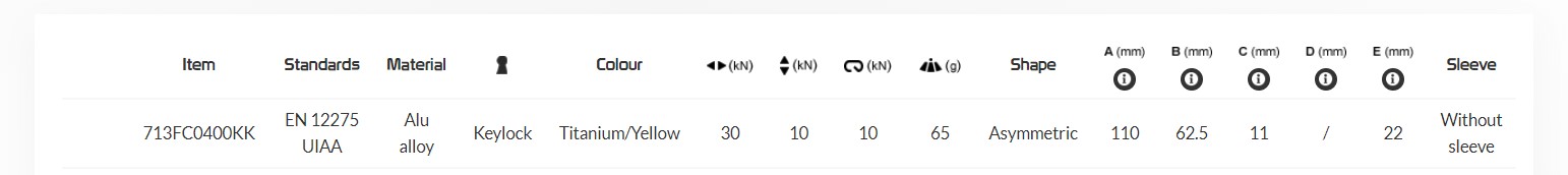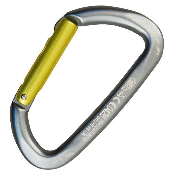 重負荷鋁合金安全連接鎖. 專為攀巖運動而設計并可用于快掛. 直門鎖允許一個容易快速的螺栓.接觸表面較寬以減少磨損并改善繩索的通過。D形鎖將主要負荷轉移至扣鎖的主軸上. 這是最耐力的.