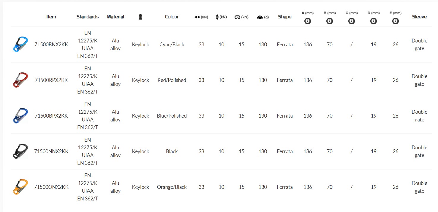 鋁合金配有雙門扣鎖的扣鎖. 打開扣鎖必要用手指拉前門時(shí),用手掌打開后門。后門被保護(hù),以防止意外打開墻壁.特別設(shè)計(jì)用于飛垃和冒險(xiǎn)公園系索。