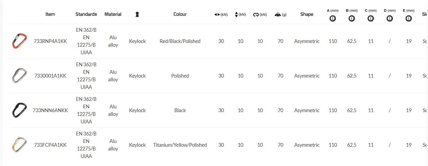 輕及重負(fù)荷鋁合金安全連接鎖, 絲扣鎖跟鑰匙鎖系統(tǒng). D形鎖將主要負(fù)荷轉(zhuǎn)移至扣鎖的主軸上. 這是最耐力的. 絲扣鎖不對稱形狀也是保護(hù)系統(tǒng)的理想選擇. 絲扣鎖門扣允許更安全的關(guān)門, 并使其適合專業(yè)使用. 有使用于螺栓保護(hù).