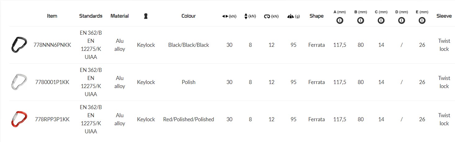 • 意大利KONG  778鋁合金連接頭, 提供扭鎖式門扣FERRATA ALU TWIST LOCK KL