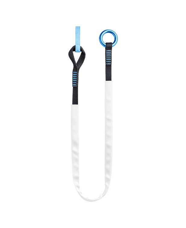"堅固的扁帶錨點和挽索由聚酯制成,帶有可移動的磨損保護裝置。得益于一端的縫制端接和另一端的鋁制連接環(huán),挽索也可以作為腰帶掛鉤穿入。連接環(huán)還允許無限制地使用中心錨點,即使在負載下也是如此