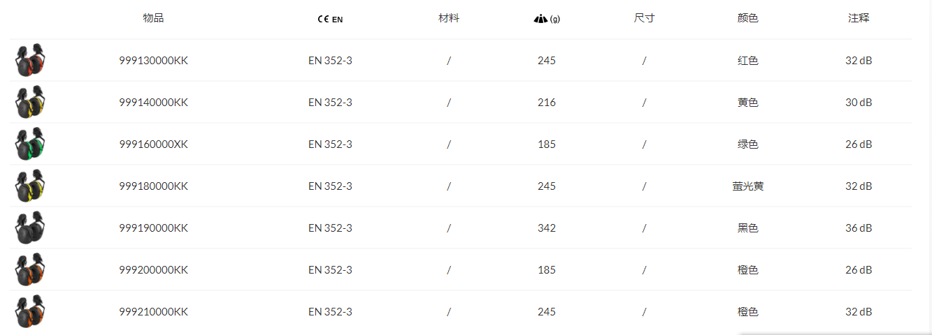 降噪3MPeltor®耳罩有7種版本,具有不同的隔音和顏色等級。