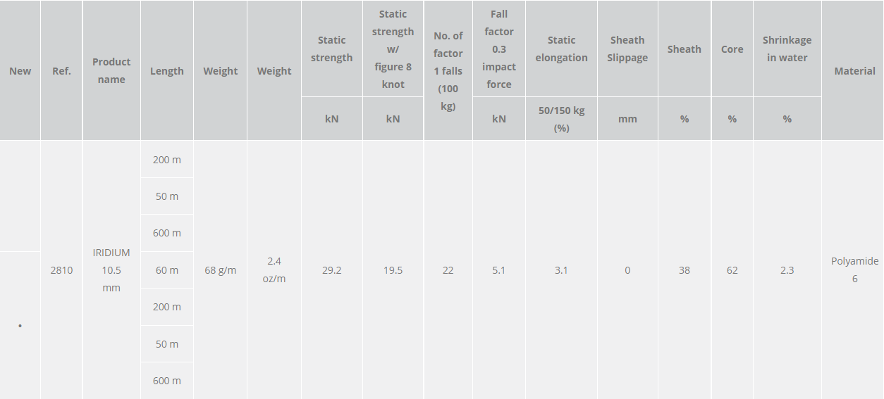 • Product description: CAMP IRIDIUM 10.5 mm - Semi-static rope