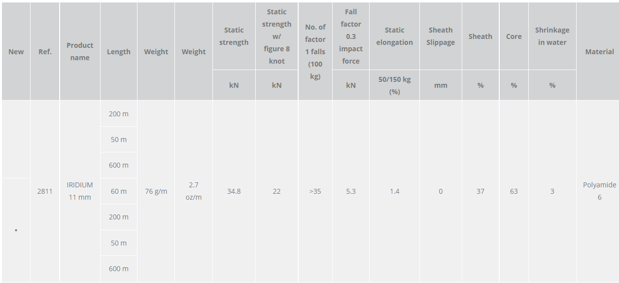 The Iridium 11 mm is the right choice for workers demanding a rope with superior strength that remains compatible with most mechanical devices. A super strong core combines with a 32 carrier sheath made from twisted yarns.