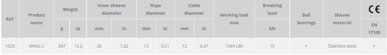 The Wing introduces a new level of safety to zip lines with an elegant pivot locking mechanism. This system makes attaching participants to cable or rope faster and easier. It also ensures that the pulley cannot detach from the line while it is loaded. Features efficient steel bearings for high-speed adventure and stainless steel sheaves for durability. Thermoplastic guards prevent accidental entanglement from clothing and hair and carry backup lines along with the pulley on upright prongs.