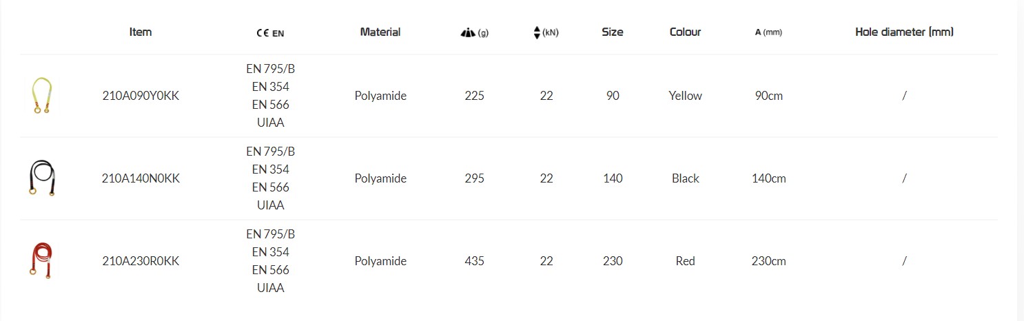 Certifications: CE EN 795/B, EN 354 and EN 566