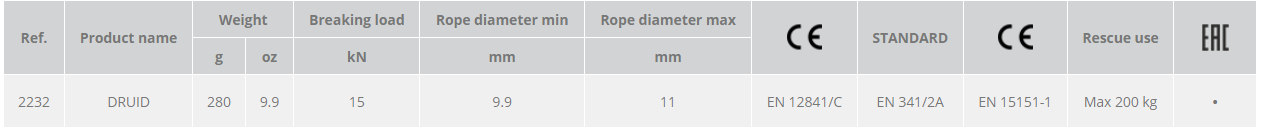 - EN 341/2A as an emergency evacuation device on a single line for workers up to 120 kg, 11 mm semi-static rope (Lithium 11 mm).