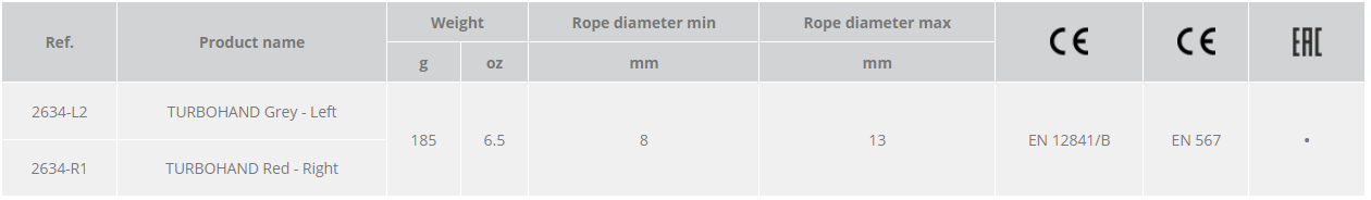 - EN 12841/B for semi-static ropes ranging from 10 to 13 mm.