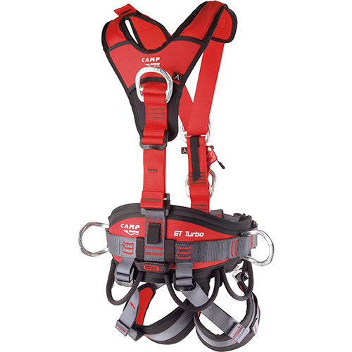 The GT Turbo combines the comfort and support of our innovative GT Sit + Chest harnesses with the most streamlined integration of our popular Turbo Chest ascender. The ergonomics of the harness follow the findings of our "SOSPESI" research program which gave us new insights on suspension trauma. Combined with the proprietary Turbo Chest ascender that features patented rollers to improve upward efficiency and reduce wear-and-tear, the GT Turbo is the most technically advanced rope access harness ever conceived. Turbochest ascender is easily detachable and replaceable. Patented STS automatic buckles on the leg loops. 5 aluminum alloy attachment points: 1 ventral for suspension, 2 side for positioning and restraint, 1 sternal and 1 dorsal for fall arrest. Webbing loop for restraint on the back.