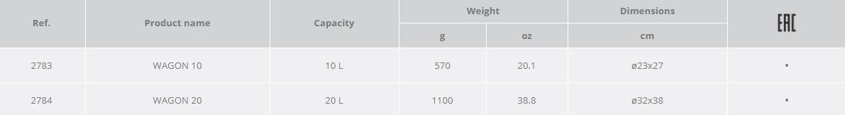 - 20 liter: features two hauling handles and two external pockets (one equipped with a gear carabiner for connecting a Tooler lanyard).