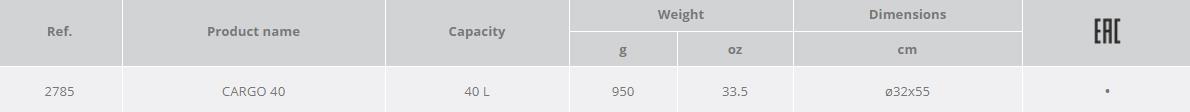 Top lid features inner zip pocket. Metal hook buckle closure with internal pull cord. Padded shoulder straps. Transparent label pocket. Loops for fixing rope ends. Hauling handle for loads up to 50 kg.