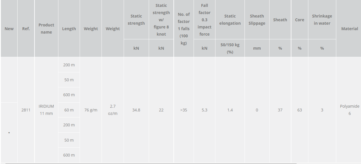 The Iridium 11 mm is the right choice for workers demanding a rope with superior strength that remains compatible with most mechanical devices. A super strong core combines with a 32 carrier sheath made from twisted yarns.