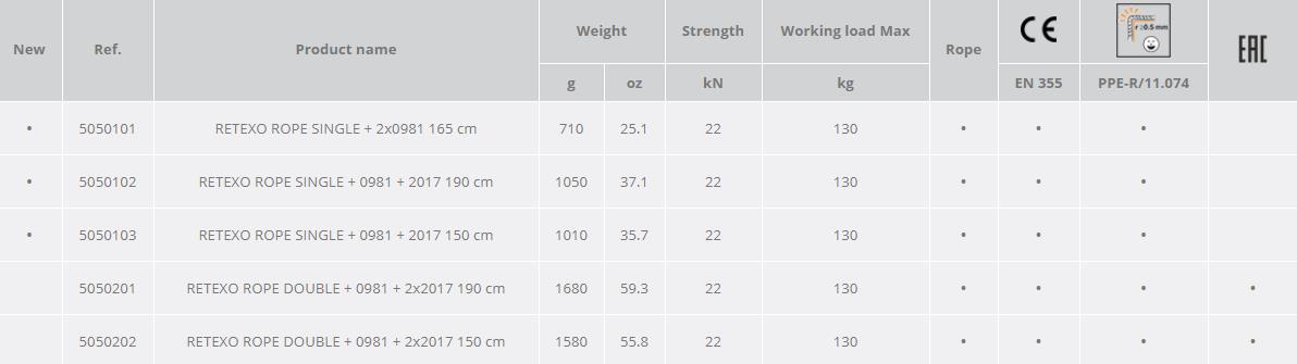 With lanyards with a total length up to 200 cm, the Retexo is certified for workers with a maximum total weight up to 130 kg.