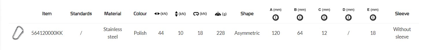 High tensile AISI 316 stainless steel carabiner with straight gate.