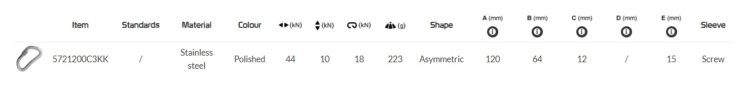 High tensile AISI 316 stainless steel carabiner with screw sleeve.