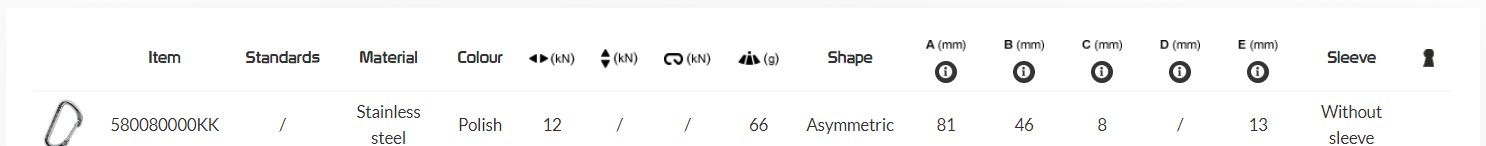 AISI 316 stainless steel carabiner with wire gate and asymmetric shape.