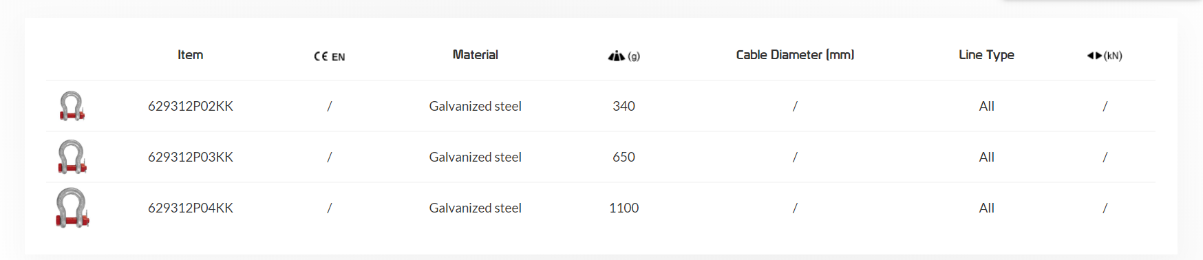 HIGH RESISTANCE HEART SHAPED SHACKLE WITH BOLT, available in 3 sizes.