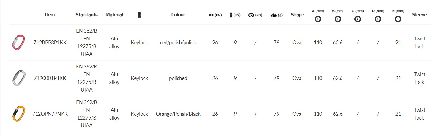 - Twist lock sleeve (2 movements): to open the carabiner turn the sleeve and pull.