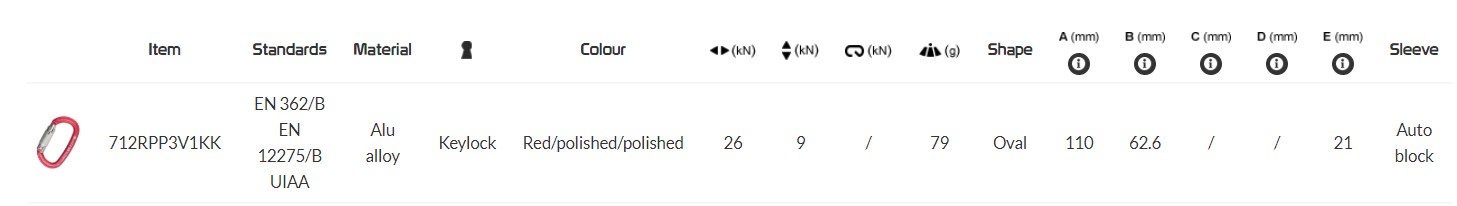 - Autoblock sleeve (3 movements): to open the carabiner must lift the sleeve, rotate it, and then pull the lever