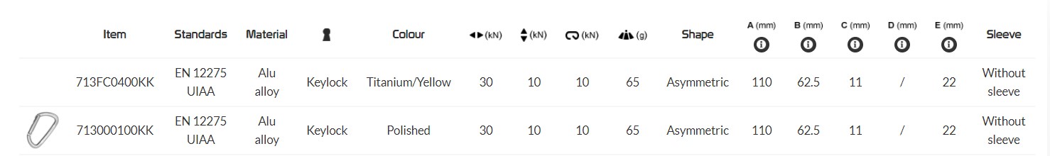 Heavy load aluminum carabiner. Designed for climbing and the use on quickdraws. The straight gate allows an easy clipping on the bolts. The contact surfaces are wider to reduce wear and improve the passage of the rope. The D shape transfers the majority of the load on the main axis of the carabiner, which is the most resistant.