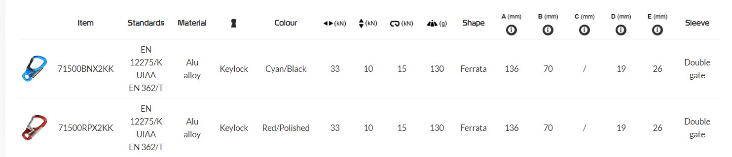 Aluminum carabiner with double gate safety system. To open the carabiner push the rear gate with your palm while pulling the front gate with your fingers. The rear gate is protected in order to prevent accidental opening  against the wall. Specifically conceived for use in via-ferrata sets and adventure parks lanyards.