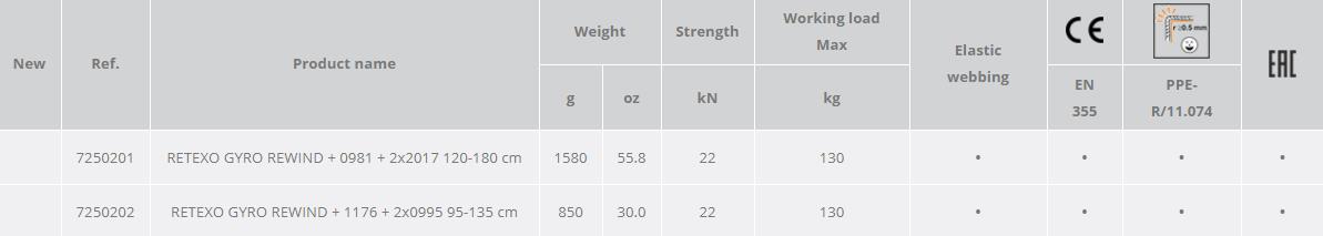 With lanyards with a total length up to 200 cm, the Retexo is certified for workers with a maximum total weight up to 130 kg.