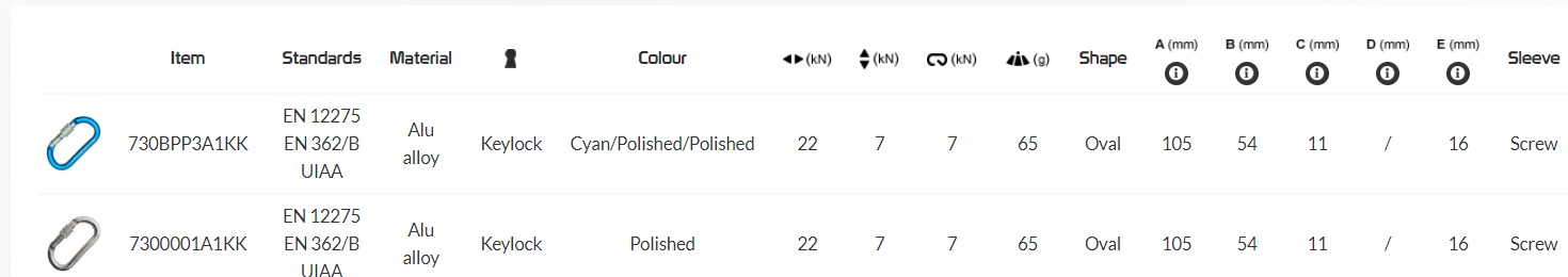 Oval aluminium carabiner with a circular section which makes it recommended for use with mobile devices (pulleys, blockers, fall arresters ...).