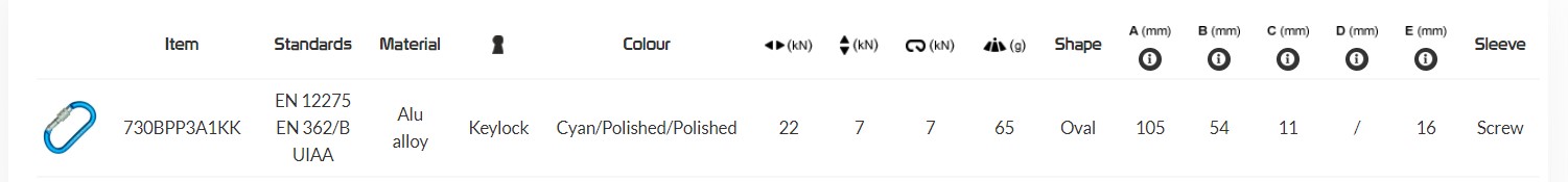 Oval aluminium carabiner with a circular section which makes it recommended for use with mobile devices (pulleys, blockers, fall arresters ...).