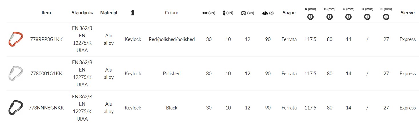 Aluminum carabiner with Express sleeve and Keylock system. The most classic carabiner for via ferrata. Its special shape allows a large opening and a good grip. Express sleeve: to open the carabiner must lower the sleeve and then pull the gate.