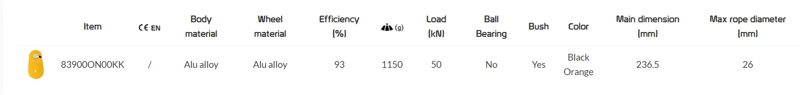Alby is a single sheave pulley with aluminum swinging side plates and aliminum wheel. Taper bush lock pulley, high efficiency (93%). It works with ropes up to 26mm.