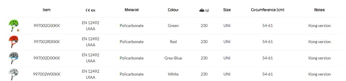 This new Kong helmet, thanks to its wide internal padding, provides maximum comfort in just 230g. The molding technology of the external polycarbonate layer, with internal high density polystyrene, provides exceptional shock resistance and an incredibly reduced weight.