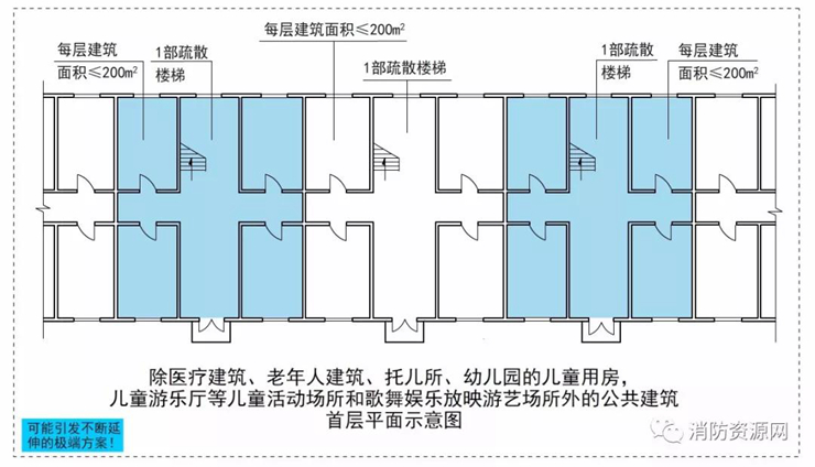 石崢嶸:新版《建規(guī)》圖示允許在建筑的局部區(qū)域設(shè)置1個安全出口或1部疏散樓梯(圖示5.5.8),容易擴(kuò)展為極端方案!